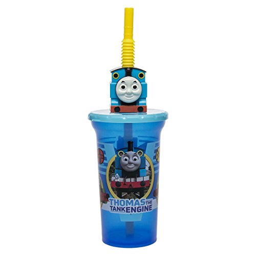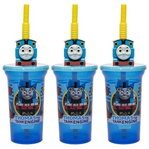 -. Feature : Tumblers w/Thomas The Tank Engine, Percy & James / Yellow flexy straw w/Thomas on top, won't fall out; Translucent blue BPA free plastic w/snap-on lid / Great present for birthday, Christmas or other holiday, stocking stuffer, secret santa; Perfect gift for boys & girls / Dishwasher safe, ages 3+, made in China; 15oz; 3.5"W x 5.5"H to lid, 10"H to top of straw / (3) Thomas The Tank Engine & Friends Sip Bottles With Straws by Zak! Designs, Blue, New