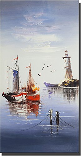 Exquisite depicting scene of sea painting with wharf will make you feel peaceful and relax. It's a gorgeous painting once it's hung, when you can see the paint brush strokes in the canvas, it is relaxing that makes you wish you are there, when you have been working for a long time.