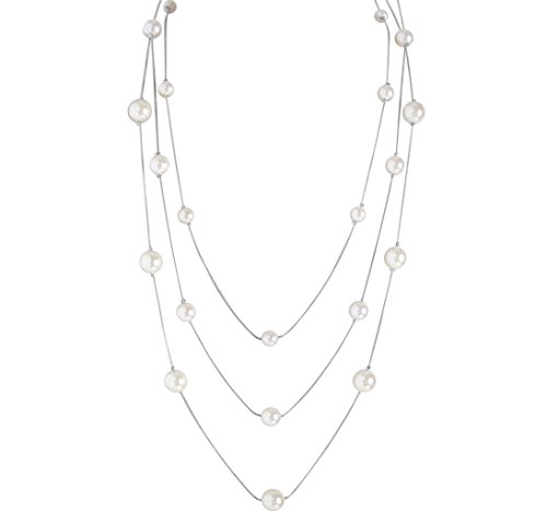 For looks that require a long necklace, this triple-strand version is a classic choice. Featuring multi-size simulated pearl stations, this versatile statement necklace will elevate any everyday or special occasion outfit with its chunky multi-layer design. Layer with other pendant necklaces against a simple dress for maximum effect. Approximate measurements: 34 inch with 2 inch chain extension. Adjustable lobster clasp closure.