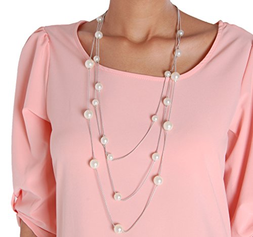 SUPERIOR QUALITY - Approximate Measurements: 34 inch with 2 inch extension. Simulated pearls and lightweight plated base metal. To extend the life of your high quality costume jewelry, limit exposure to water, perfume or body cream. This item may not be suitable for people with metal allergies.