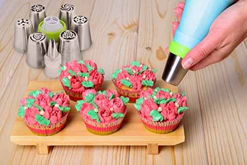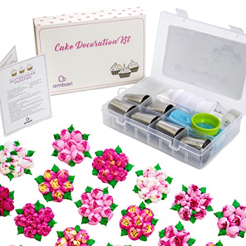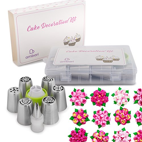 Russian Piping Tips Cake Decorating Kit by Ambari- 21 PCS Great for Wedding Cakes,Birthday Cupcakes - Edible Designs with Frosting Tips, Piping Bags, & Coupler Complete Set with Guide and Free Recipe
