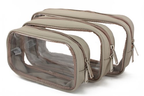 -. Feature : Small set includes 3 sizes: 10.25" x 5" x 2.25"; 8.5" x 4.5" x 2"; and 7" x 3.5" x 2" (Quart Size) / Side panels are sturdy and pliable clear plastic / Finishing includes matching piping, binding, and nylon thread, as well as dual zipper pull tabs which open to half way down each end for easy wide opening / Gussets are matching material inside and outside / Packies are water resistant and machine washable, gentle cycle, mild soap, lukewarm or cold water, and air dry or tumble dry no heat