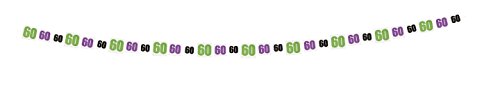 - Vibrant garland features the number 60 in alternating green, black, and purple paper cutouts