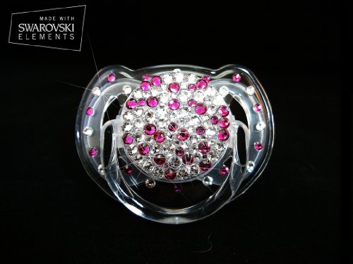 -. Title : Baby Schnuller veredelt mit Swarovski Elements Farbton Crystal und Fuchsie Rund