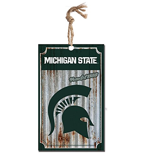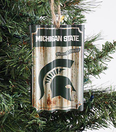 - Features a corrugate style ornament with the Michigan State University team logo, team colors & a rustic finish