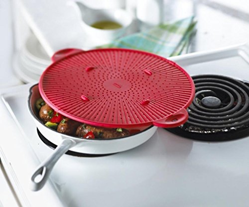 Silicone Splatter Guard Skillet Pot Pan Cover Strainer Trivet Round 11" Red