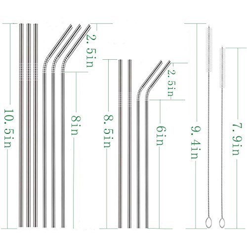 3 x 10.5in straight straws 3 x 10.5in bent straws 2 x 8.5in straight straws 2 x 8.5in bent straws 1 x 7.9in brushes 1 x 9.4in brushes