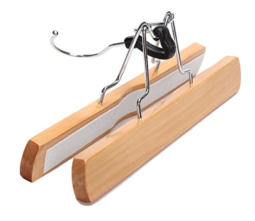 -. Feature : Specification: Set of 10 wooden pants hangers, single hanger size - 9.84 x 6.5 x 0.98 inch / Material: Made of high grade gugertree wood, strong ability for heavy clothes and a long time use. Perfect for pants, skirts, slacks and so on. The anti-rust hook can adjust well, easily use. / Full-width Grip Without Wrinkle or Crease: The padding on the interior of the hangers has a great care for your clothes. Special full-width grip will protect your clothes without slipping. Unique hanging style leaves no marks or wrinkles. / Anti-Rust 360° Rotating Hooks: Designed with premium quality hook which allows for full 360 degree swivel, simple and easy to hang and take. / Space Saving Design: These hangers with flat profile can maximize your closet space easily.