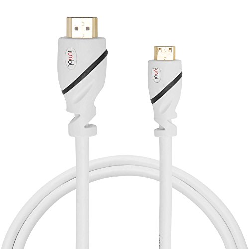 Jumbl High-Speed HDMI-A to Mini HDMI-C Premium Cable (3 Feet) for Connecting Camcorders & DSLR Cameras to a TV, Supports 3D & 4K Resolution, Ethernet, 1080P and Audio Return - White