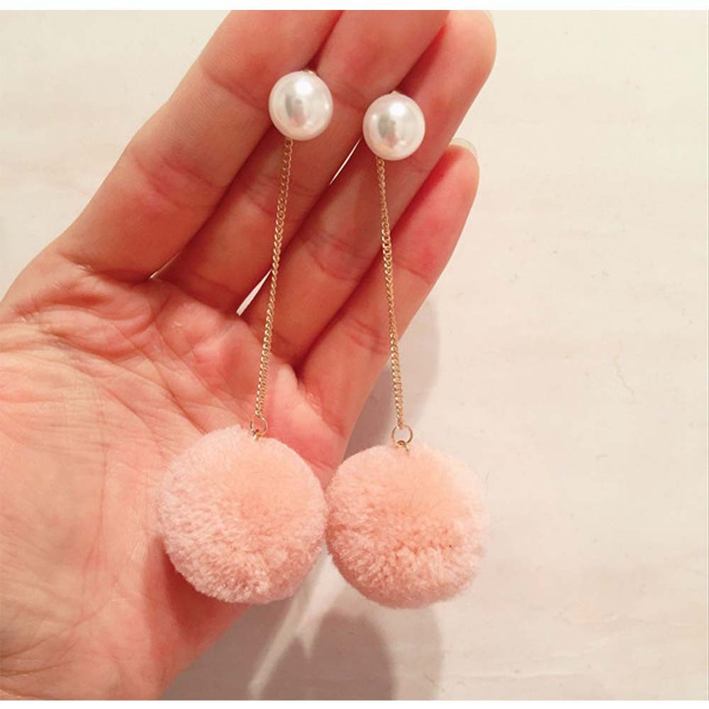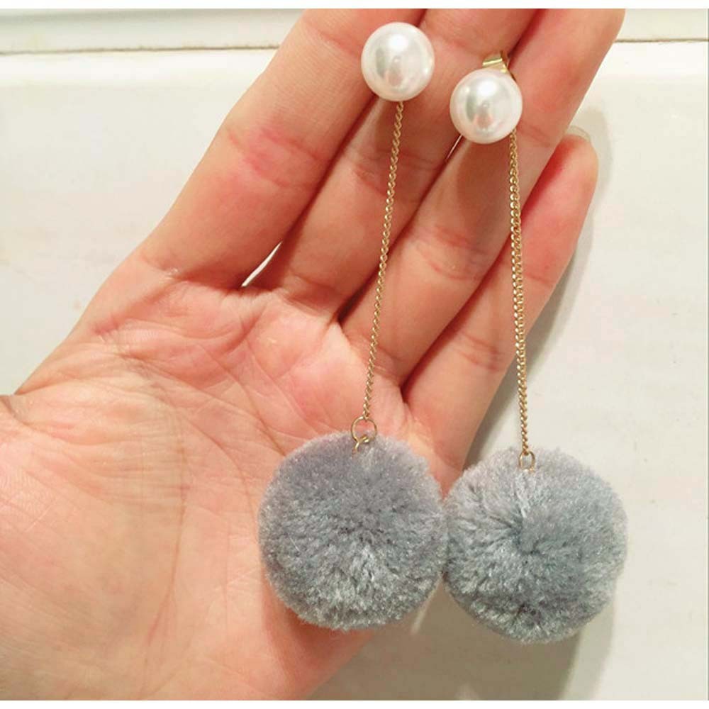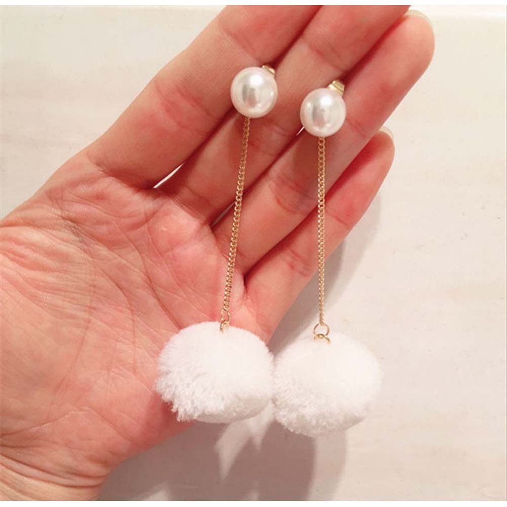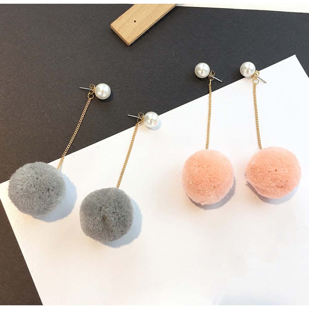 一粒パールにファーぽんぽんが揺れて愛らしいロングピアス
