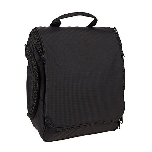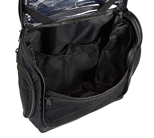 Black Hanging Toiletry Bag - Compact Portable Travel Bag Organizer - For Men & Women - Holds Shaving Bottles, Razors, Shampoo, Toothpaste, Cosmetics, Makeup, & More - 10.5 x 9.5 x 4.5 Inches