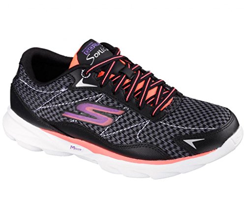 Enjoy the journey even more with the Skechers GOrun Sonic 2 shoe. Woven FitKnit fabric and synthetic upper in a lace up recreational running shoe with Resalyte cushioning and GOga Mat technology insole. Features high-rebound cushioning with responsive feedback. Combines a proprietary 'SQUISH' component with our exclusive Resalyte® material. GOga Mat® Technology. Resalyte proprietary lightweight injection molded compound with memory retention in midsole. Ortholite® insole inhibits odor, provides long lasting cushioning and wicks away moisture. M-Strike design promotes a midfoot strike. 6mm heel drop. GOimpulse sensor design in outsole offers flexibility and feedback for a more responsive experience. Super lightweight 6 3/4 oz. per shoe in a women's size 7". Reflective detail and contrast tongue. Lace up front.Feature