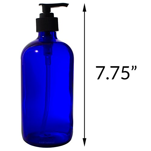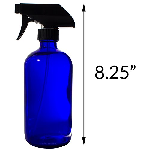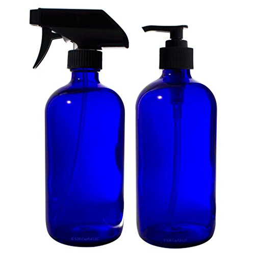 16 oz Cobalt Blue Boston Round Glass Spray and Pump Bottles (2 Pack) + Labels