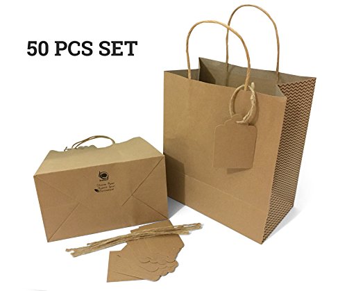 - •PERFECT SIZE PAPER BAGS + GIFT TAGS - 8.75 x 5 x 10 Inch, 50pcs each of the 170gsm weight kraft paper with a serrated top edge and 50 PCS of the 250 gsm vintage gift tags with jute twine string. These kraft bags and gift tags are made of Recycle Paper and FSC COMPLIANT.