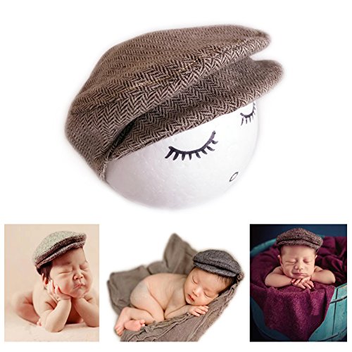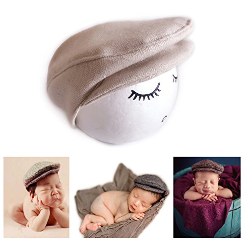 Fashion Newborn Boy Girl Costume Outfits Baby Photo Props Hat Gentleman Cap (Beige)