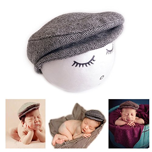 Fashion Newborn Boy Girl Costume Outfits Baby Photo Props Hat Gentleman Cap (Grey)