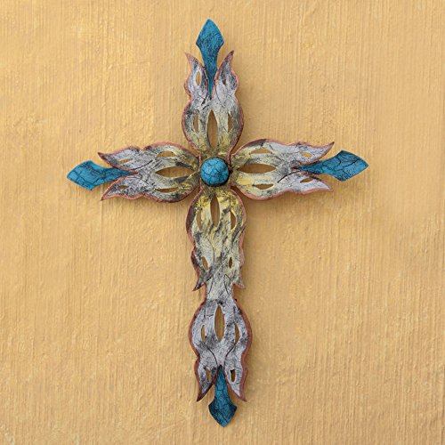 NOVICA Large Blue Religious Steel Wall Cross, 23.5" Tall, 'Mission Cross'