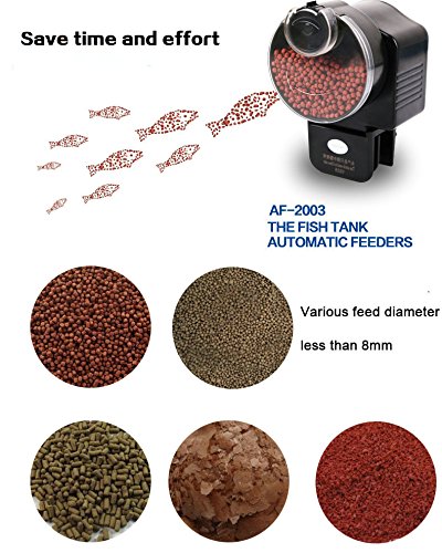 The item can help you feeding your beloved fish in aquarium when you are working, shopping, or travelling outside. The feeding food and time are adjustable.