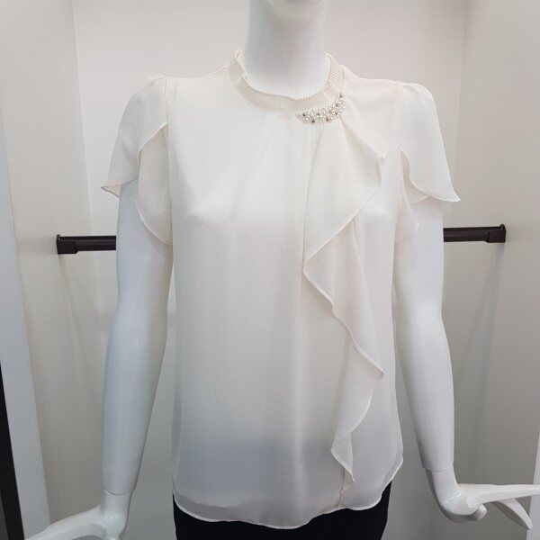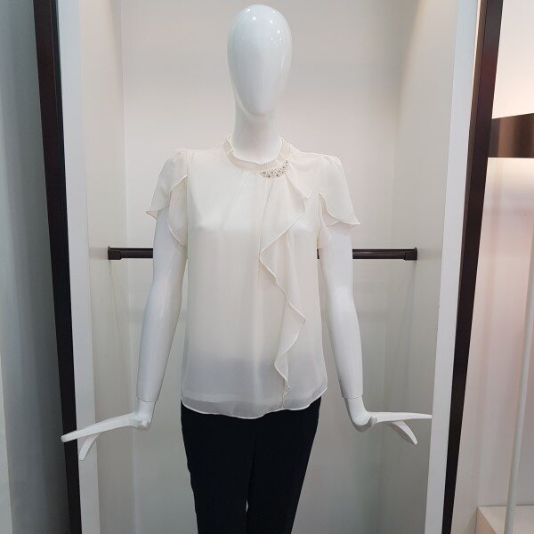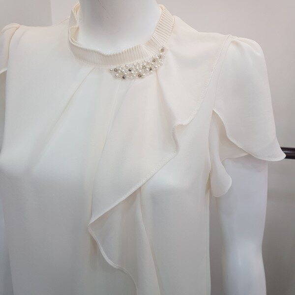 네크 프릴과 비즈장식이 돋보이는 여성스러운 블라우스
