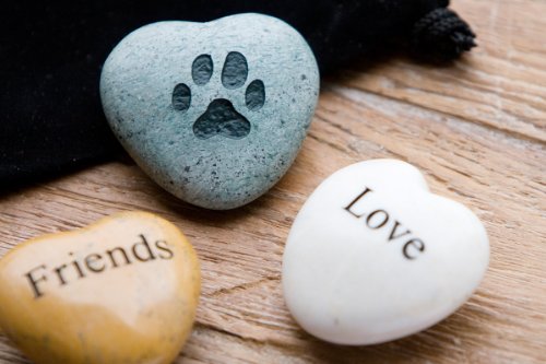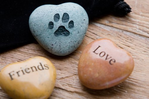 Paw, Friends, Love 2" Jasper Heart Pet Memorial Engraved Stone Gift Set