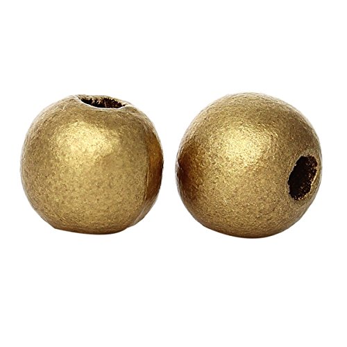 500 Metallic Gold Wood Beads Bulk 10mm Round Wood Bead with 3.5mm Large Hole