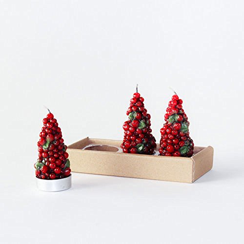 Christmas Berry Tree Tea-light Candles, Set of 3