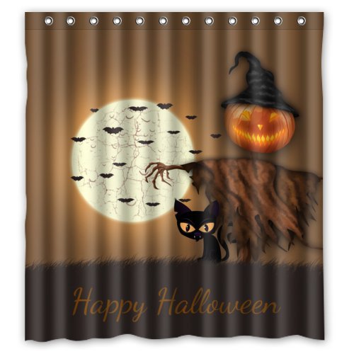 -. Title : 66"(W) x 72"(H) Happy Halloween Scarecrow New Style 100% Polyester Shower Curtain