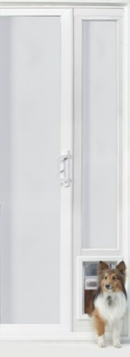 Studio : Ideal Pet Products Publisher : Ideal Pet Products Product Description The Vinyl Patio Pet Door can be installed right along side your sliding patio door. Cutting a hole in the wall or door is unnecessary. You can easily install this door and still utilize your existing door lock. The two sizes offered fit most vinyl sliding glass patio doors. They are also adjustable in height, which include: 78" standard door - 76 3/4" to 78 1/2" 96" Tall Door - 92 3/4" to 94 1/2" Each of these doors also has two different sizes available for the Pet Door. 78" Door has a Medium Pet Door Flap Size of 6 5/8"H x 11 1/4"W 78"Door has an Extra Large Pet Door Flap Size of 10 1/4"H x 15 3/4"W 96" Door has a Medium Pet Door Flap Size of 6 5/8"H x 11 1/4"W 96"Door has an Extra Large Pet Door Flap Size of 10 1/4"H x 15 3/4"W Assembly level/degree of difficulty: Moderate.