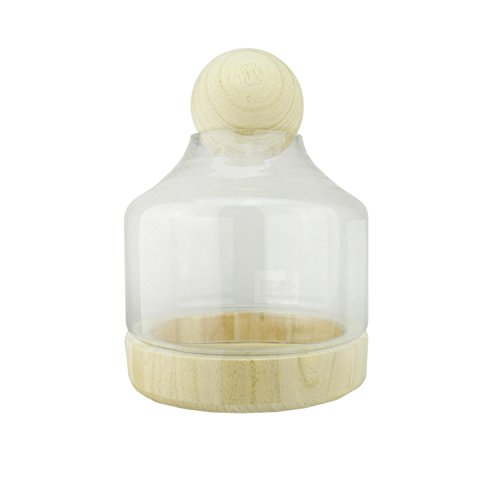 - Ideal for creating artificial terrariums 12.5" Transparent Glass Hurricane with Decorative Wooden Lid and Base