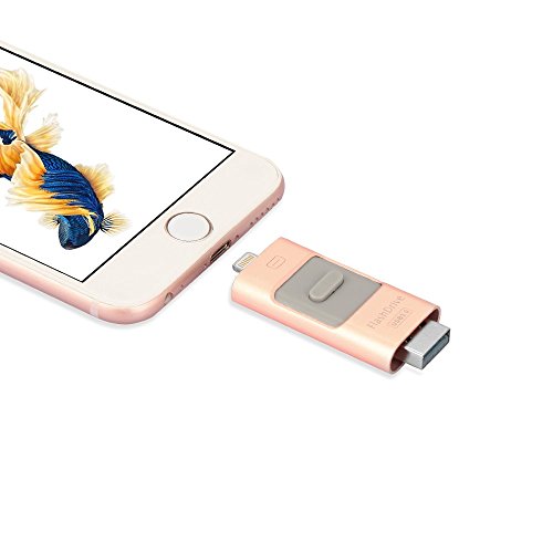 iPhone Flash Drive 16GB, Digfuns iFlashDevice USB 3.0 & Lightning Dual Connector External Storage Memory Expansion for iPhone 7/Plus 5/5S/iPhone 6/6S/Plus/iPad /Mac/iPod Memory Rose Gold