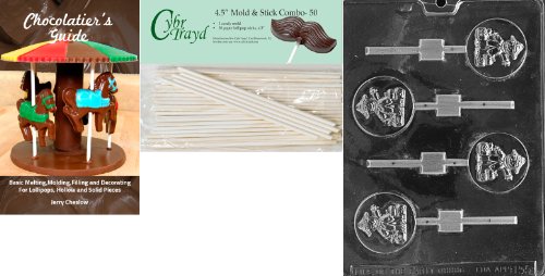 Cybrtrayd 'Scarecrow Lolly' Halloween Chocolate Candy Mold with 50 4.5-Inch Lollipop Sticks and Chocolatier's Guide