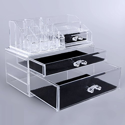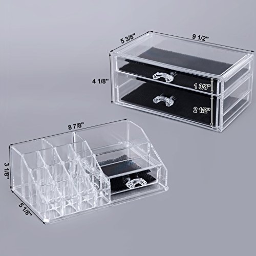 SPACE SAVING: 9 1/2''L x 5 3/8''W x 7 1/2''H, 2-piece storage cases interlock securely, occupy little space, but large enough to organize all of your makeup items in one place, tidy up your dresser