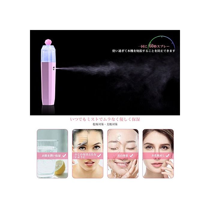 원본상품명: KEYNICE ハンディミスト フェイスケア 保ミスト フェイス補水器 乾燥策 USB充電式 ミニ持ち運び便利 ピンク