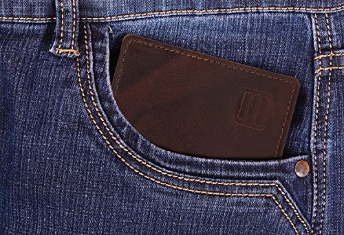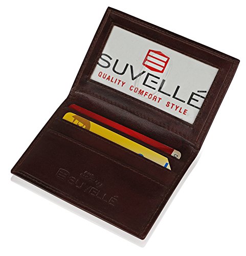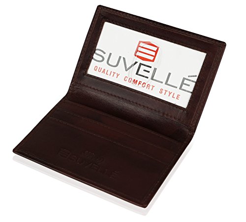 Just the right size for the stylish man who likes to carry or travel light!!! The Suvelle RFID Slim minimalist card holder is crafted from rich genuine leather built with an RFID shield to protect your personal information from identity theft. It features 3 card slots with an ID window for sleek and bulk free organization. Want to know more? ? Suvelle Men's RFID Slim Leather Minimalist Card Holder keeps your essentials effortlessly organized while the RFID shield keeps your personal information safe ? Features 3 card slots, fits 1-2 cards in one slot perfect for debit/ credit/business/rewards/transit cards and more ? RFID Wallet helps protect and block electronic pick-pocketing ? Embossed Suvelle logo at the front, Suvelle RFID Block logo at the interior gives it a subtle touch of brand identification ? Constructed from soft rich genuine leather that is stylish, modern and timeless, a single-needle stitching around the perimeter gives it the finishing touch ? Sleek style ensures comfortable carrying in any pocket ? APPROXIMATE MEASUREMENTS: closed 3" W, 4" L, open 6" W, 4" L ? Available in your choice of black fine leather or brown antique marbleized leather 0 |