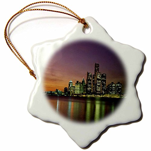 -. Title : 3dRose Florene Worlds Exotic Spots - Detroit Michigan At Nite - Ornaments