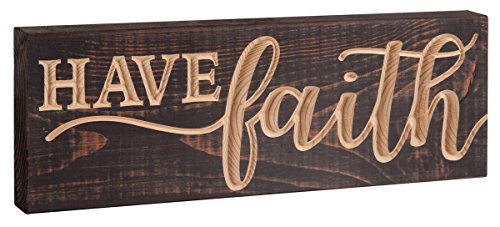 Have Faith Dark Brown 15.75 x 5.5 Inch Pine Wood Carved Barnhouse Block Tabletop Sign