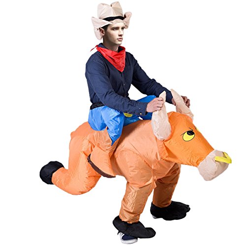 -. Binding : Toy -. Brand : Super buy -. Department : unisex-child -. EAN : 6933315536237 -. Feature : Suitable for Man from 1.5m to 2.0m tall / Material: Waterproof Polyester Fabrics / Package Includes: 1 x Fancy Dress Bull (Hat included) / Require 4 ×AA batteries(not included in the item) / Easy and quick to inflate and deflate -. Label : Super buy -. Manufacturer : Super buy -. ProductGroup : Toy -. ProductTypeName : TOYS_AND_GAMES -. Publisher : Super buy -. Studio : Super buy -. Title : Super buy Waterproof Inflatable Motor Fancy Dress Horse Bull Riders Christmas