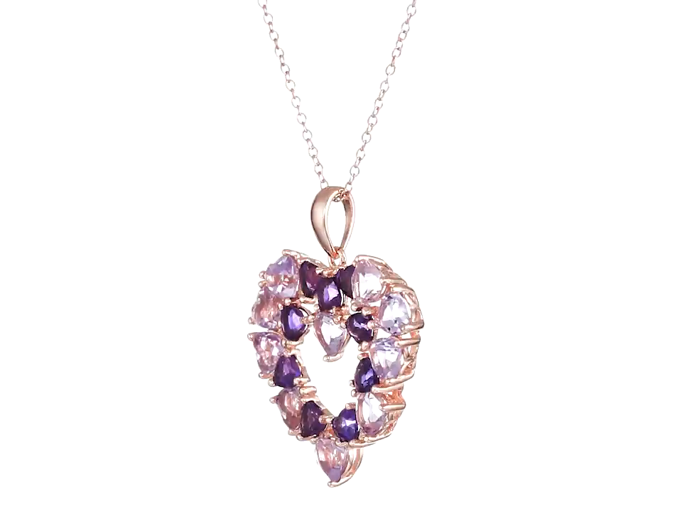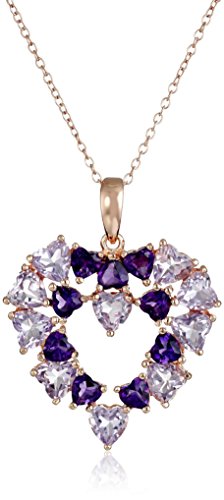Rose Gold Plated Sterling Silver Brazilian Amethyst and African Amethyst Open Heart Pendant Necklace, 18"