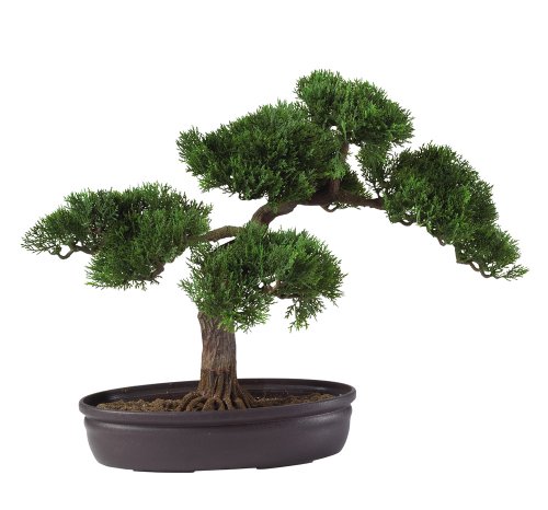 Nearly Natural 4106 Cedar Bonsai Decorative Silk Plant, 16-Inch, Green