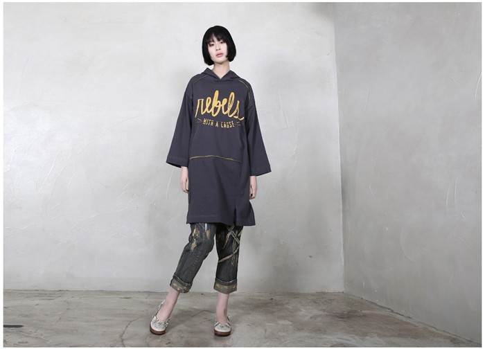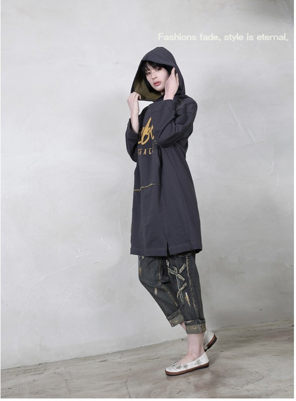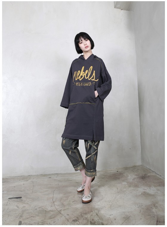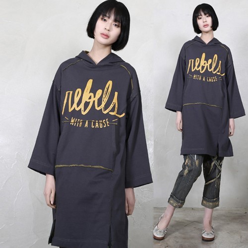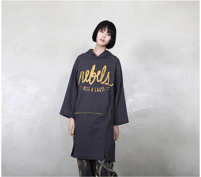 商品名:ワンピース レディース 長袖 ロング丈 プリント フード 秋 冬 2017 モード系 個性的 40代 ファッション