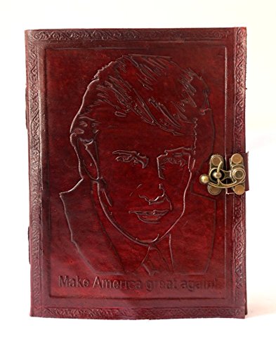 -. Feature : Genuine Leather Journal for use as Personal Diary, Scrapbook, Photo Album, Ledger, etc / Height 8 inches ,width 6 inches / 200 sides usable handmade cotton pages (100 pages) / Embossed Donald Trump 1 locks Journal / Handcrafted from Eco-Friendly Leather With Recycled Paper