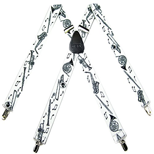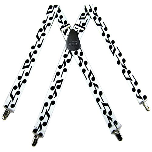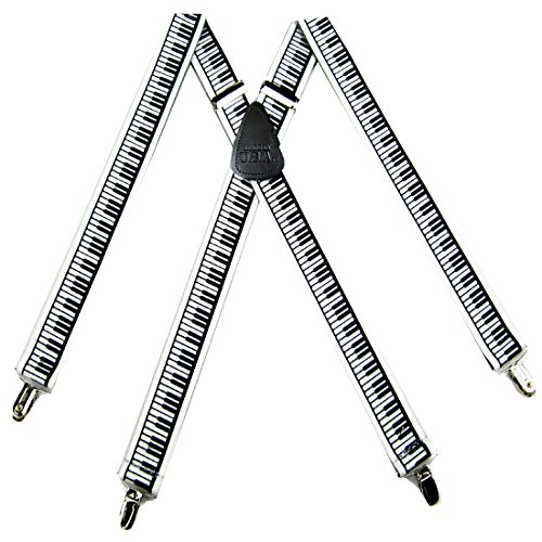 Binding : Apparel Product Description Made in the U.S.A. - X-BACK suspenders as shown in the image. This Mens Piano Keyboards Theme Clip Suspender can be worn with any attire either formally or for that dressed down casual look.Fully adjustable to fit anyone between 5'5" - 6'2" tall.Complimented with a Genuine leather stitched " MADE IN U.S.A. " patch on the back. Finished with high grade metal clips attached to genuine leather for a more formal look that hold strong and will not slip off.Unlike any other suspenders these are the perfect compliment for anyone who likes to wear suspenders or for any special occassion.Makes for the perfect gift. 0