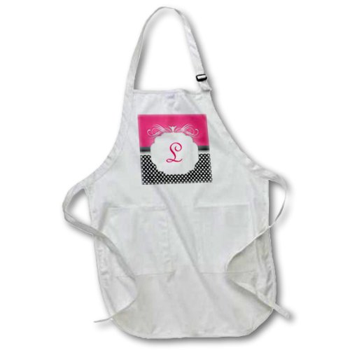 3dRose Elegant Pink with black and White Polka Dot Monogram Letter L - Full Length Apron, 22 by 30-Inch, black, with Pockets (apr_113851_4)