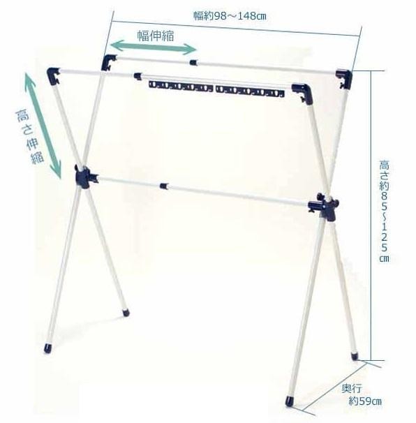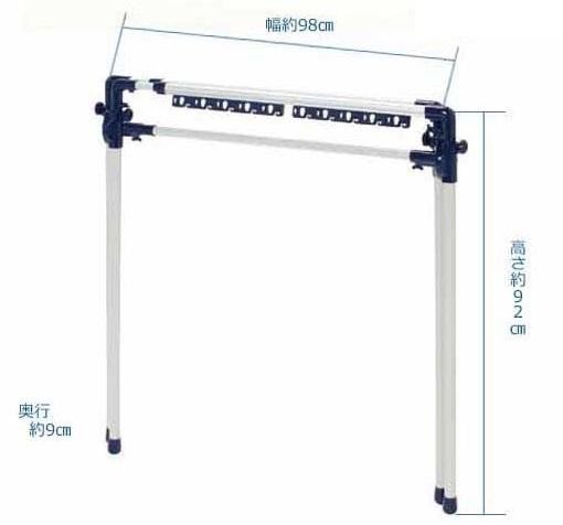 | 仕様 | ふとん2枚干し可能 ピンチ(洗濯バサミ)かけ穴:10カ所 ハンガーかけ穴(大):10カ所 ハンガーかけ穴(小):10カ所 全体耐荷重:約10kgまで 屋外使用不可 組立式(工具不要) |