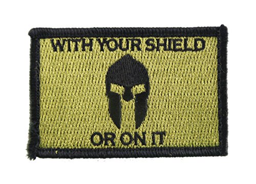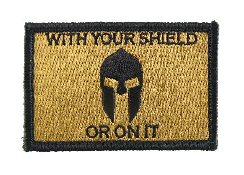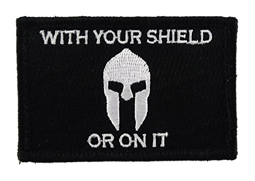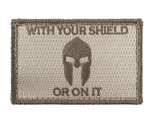 -. Title : With Your Shield or On It Spartan Tactical Velcro Fully Embroidered Morale Tags Patch