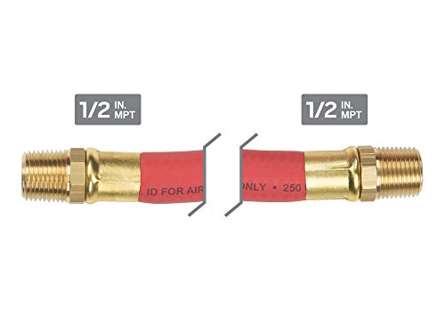 TEKTON 46362 1/2-Inch I.D. by 3-Foot 250 PSI Rubber Lead-In Air Hose with 1/2-Inch NPT Male Ends