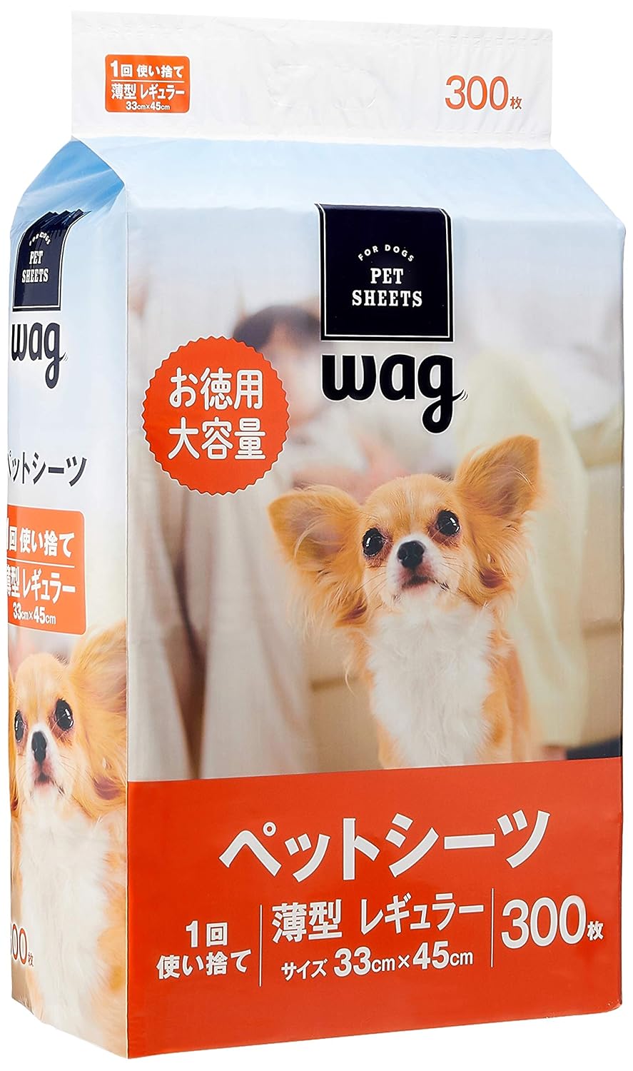 薄型 レギュラー 300枚 1回使い捨てタイプ※小型犬1回分約30cc 原産国:中国 サイズ (1枚あたり 幅X奥行X高さ):33×45×0.1cm 重量(1枚あたり):約11g サイズ(1袋あたり 幅X奥行X高さ):32.5×15.5×43cm 重量(1袋あたり):3.3kg