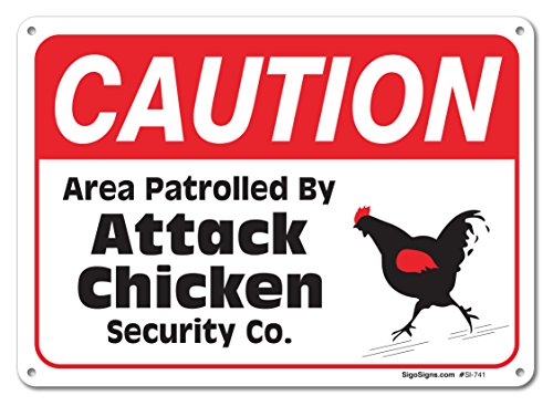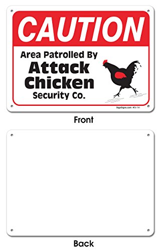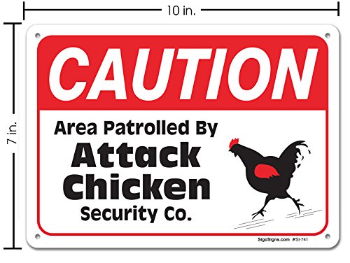 Area Partrolled By Chicken Sign, Large 10 X 7" Aluminum, For Indoor or Outdoor Use - By SIGO SIGNS