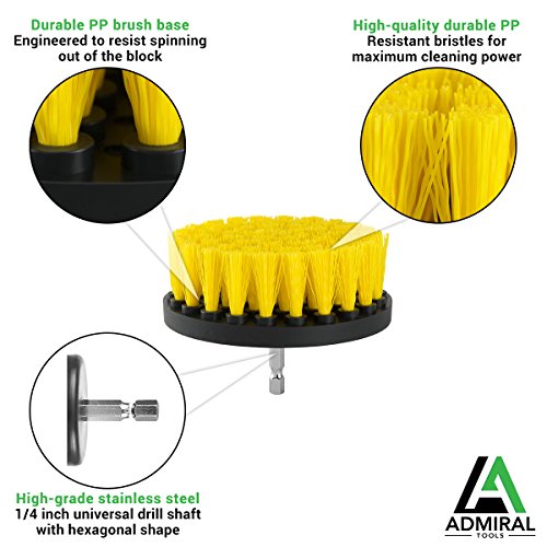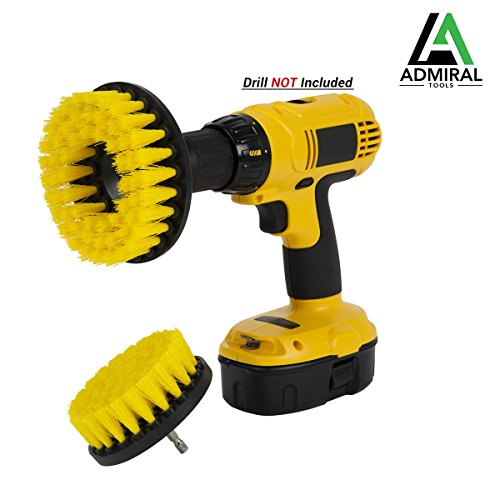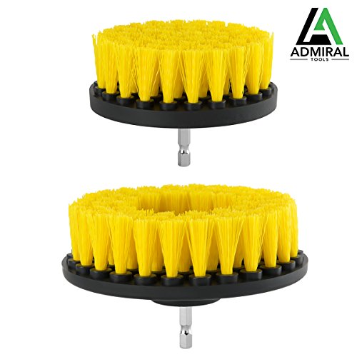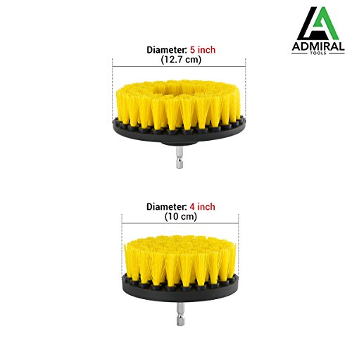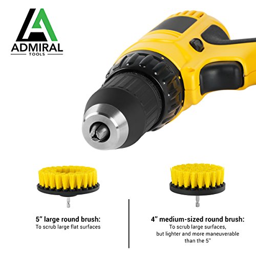 ADMIRAL Bathroom Cleaning Drill Brush Kit || 5'' and 4'' brushes || Medium Stiffness Nylon Brushes || For cleaning Bathroom Surfaces Tub Sink Shower Toilet Tile and Grout || Power Scrubber Drill Brush