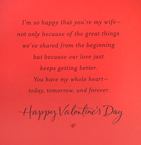 Inside Message: I'm so happy that you're my wife-- not only because of the great things we've shared from the beginning but because our love just keeps getting better. You have my whole heart-- today, tomorrow, and forever. Happy Valentine's Day.